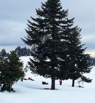 Dönüşte çıkılan parkurun bir kısmından geçmeyip yayla rotasından inmiştik. Kartopu oynayıp yokuş aşağı yuvarlananlar bizim gruptan. 😊